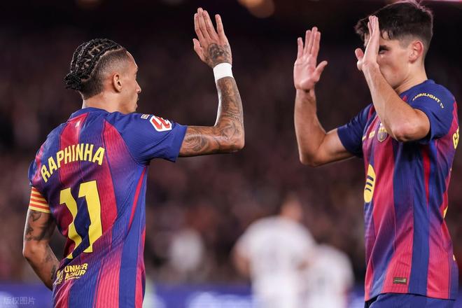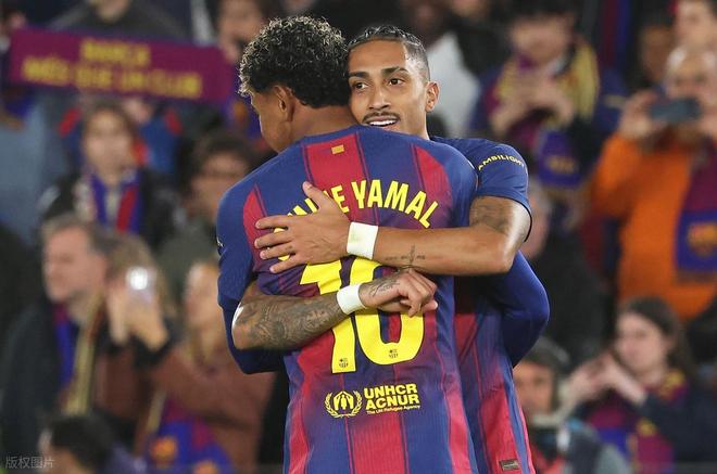第80分钟,巴萨中路强攻,亚马尔禁区弧顶前接球摆脱2人包夹后大力兜射,埃雷拉奋力将球扑出。第85分钟,巴萨又是后场快速反击,孔德右路带球高速推进和亚马尔撞墙配合,亚马尔策应巧妙斜塞,孔德跟进倒三角回传中路,卡特纳解围失误将球踢到禁区左侧无人防守的拉菲尼亚跟前,拉菲尼亚笑纳大礼,超近距离凌空推射空门得手,拉菲尼亚梅开二度,巴萨2:0锁定胜局。